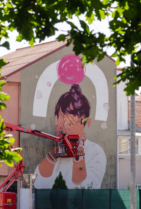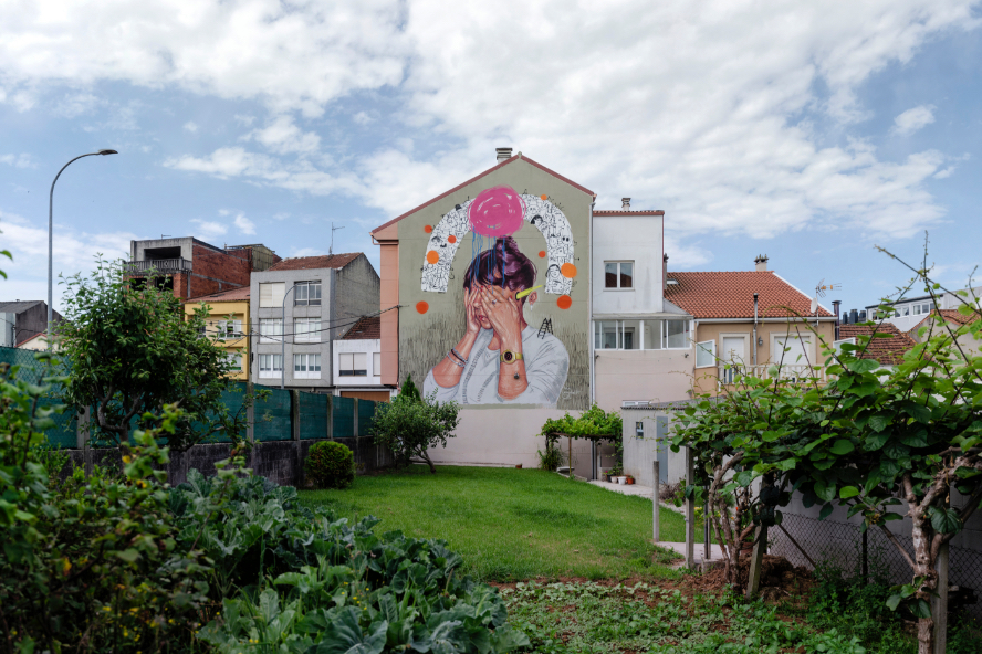 Esta obra fue realizada en Carballo, La Coruña, el pasado mes de Junio, en el festival de arte urbano Rexenera Fest. Este trabajo fue para mí un reto bastante importante tanto física como mentalmente, un punto de inflexión. Me llamaron para participar en este evento, tras un largo periodo de no pintar en festivales y sin haber salido casi de Sevilla durante el tiempo que llevábamos de pandemia.