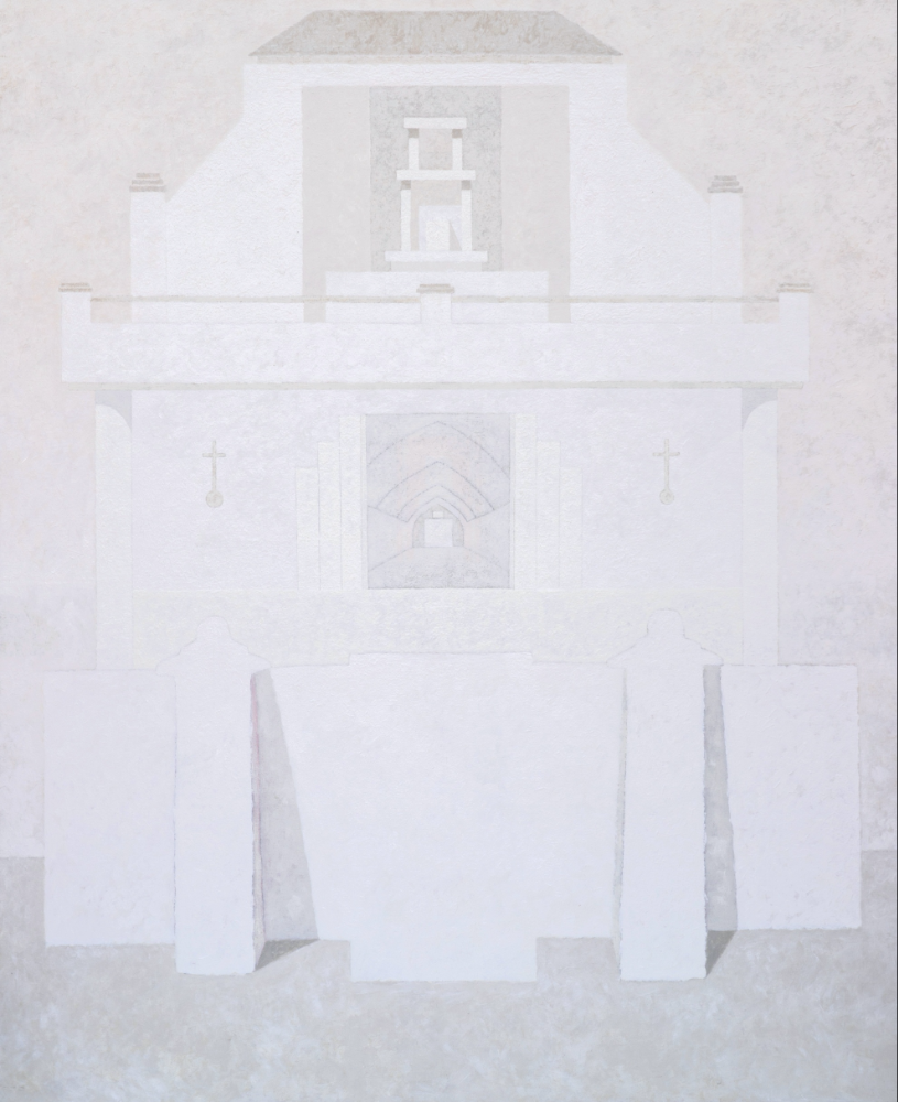 En la exposición, Silencio Blanco, hay obras que son representaciones verosímiles de alzados y otras veces composiciones totalmente inventadas.